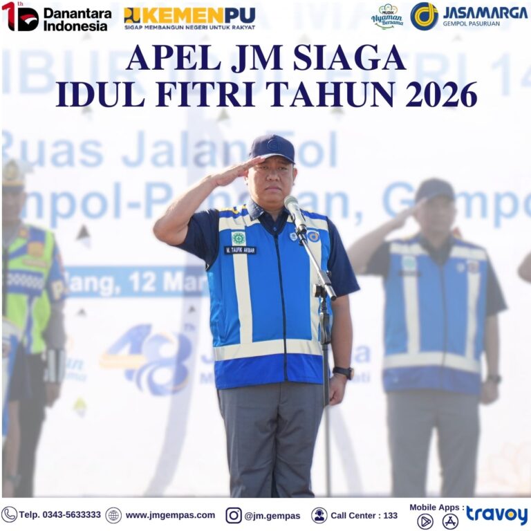 (12/3) PT Jasamarga Gempol Pasuruan (PT JGP) bersama dengan PT Jasamarga Pandaan Tol (PT JPT) dan PT Jasamarga Pandaan Malang (PT JPM) melaksanakan Apel Terpadu Jasa Marga Siaga Operasional Libur Idul Fitri 1447 H/2026 sebagai bentuk kesiapan dalam memberikan pelayanan…